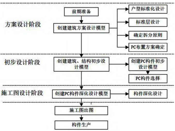 裝配式建筑的設(shè)計程序分為方案設(shè)計、初步設(shè)計、施工圖設(shè)計3個階段,如圖1所示。