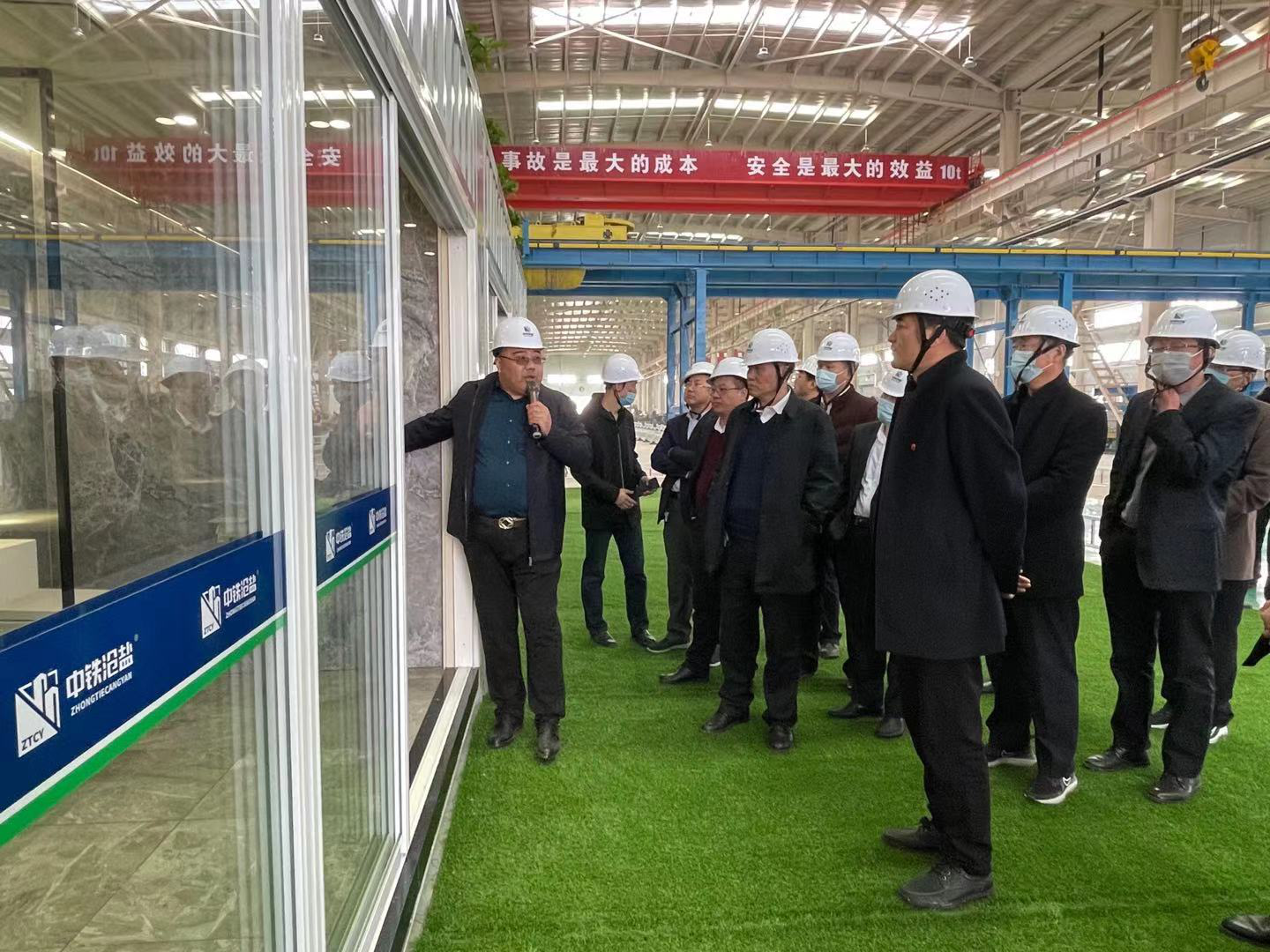 3月10日,滄鹽集團(tuán)董事長劉建軍、總經(jīng)理張立莊、副總經(jīng)理王化池、文興峰,各單位黨政領(lǐng)導(dǎo)等一行40人組成的考察團(tuán)蒞臨位于港口開發(fā)區(qū)通六路的河北中鐵滄鹽建筑科技有限公司進(jìn)行考察指導(dǎo)工作。中鐵滄鹽副董事長王峰偉、總經(jīng)理王志巖、副總經(jīng)理劉建政、逯登平、總會計師李紅標(biāo)等領(lǐng)導(dǎo)班子成員熱情接待了考察團(tuán),并深入生產(chǎn)車間、中控調(diào)度室、拌合站、料倉等陪同考察。