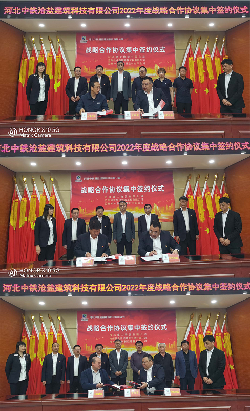 “強(qiáng)強(qiáng)聯(lián)合,謀事共贏”,4月21日河北中鐵滄鹽建筑科技有限公司2022年戰(zhàn)略合作集中簽約儀式在公司商務(wù)會(huì)議室隆重舉行。