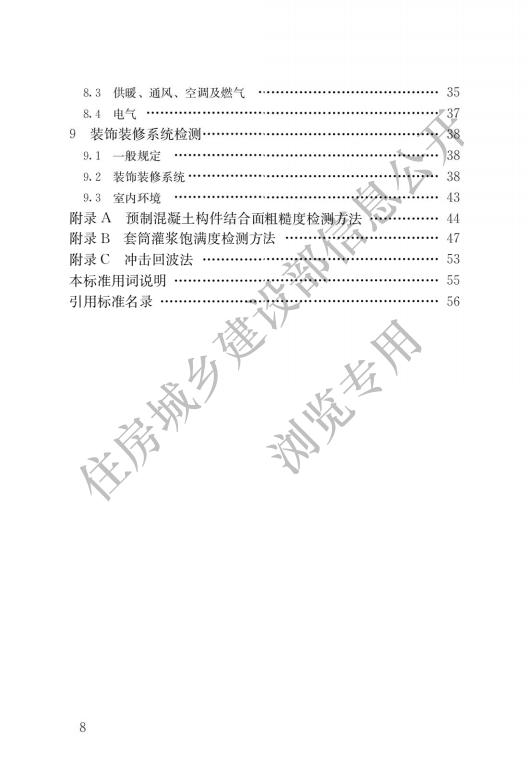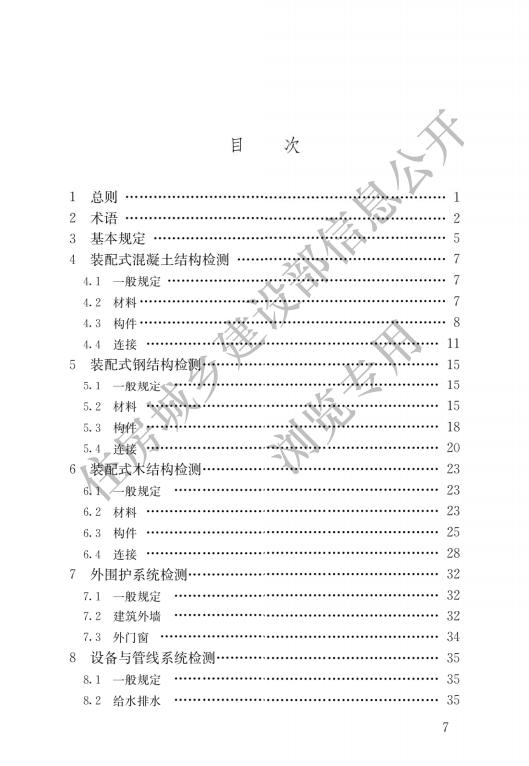 除總則、術(shù)語、基本規(guī)定外,標(biāo)準(zhǔn)還對裝配式混凝土結(jié)構(gòu)檢測、裝配式鋼結(jié)構(gòu)檢、裝配式木結(jié)構(gòu)檢測、外圍護(hù)系統(tǒng)檢測、設(shè)備與管線系統(tǒng)檢等作出了明確的規(guī)定。