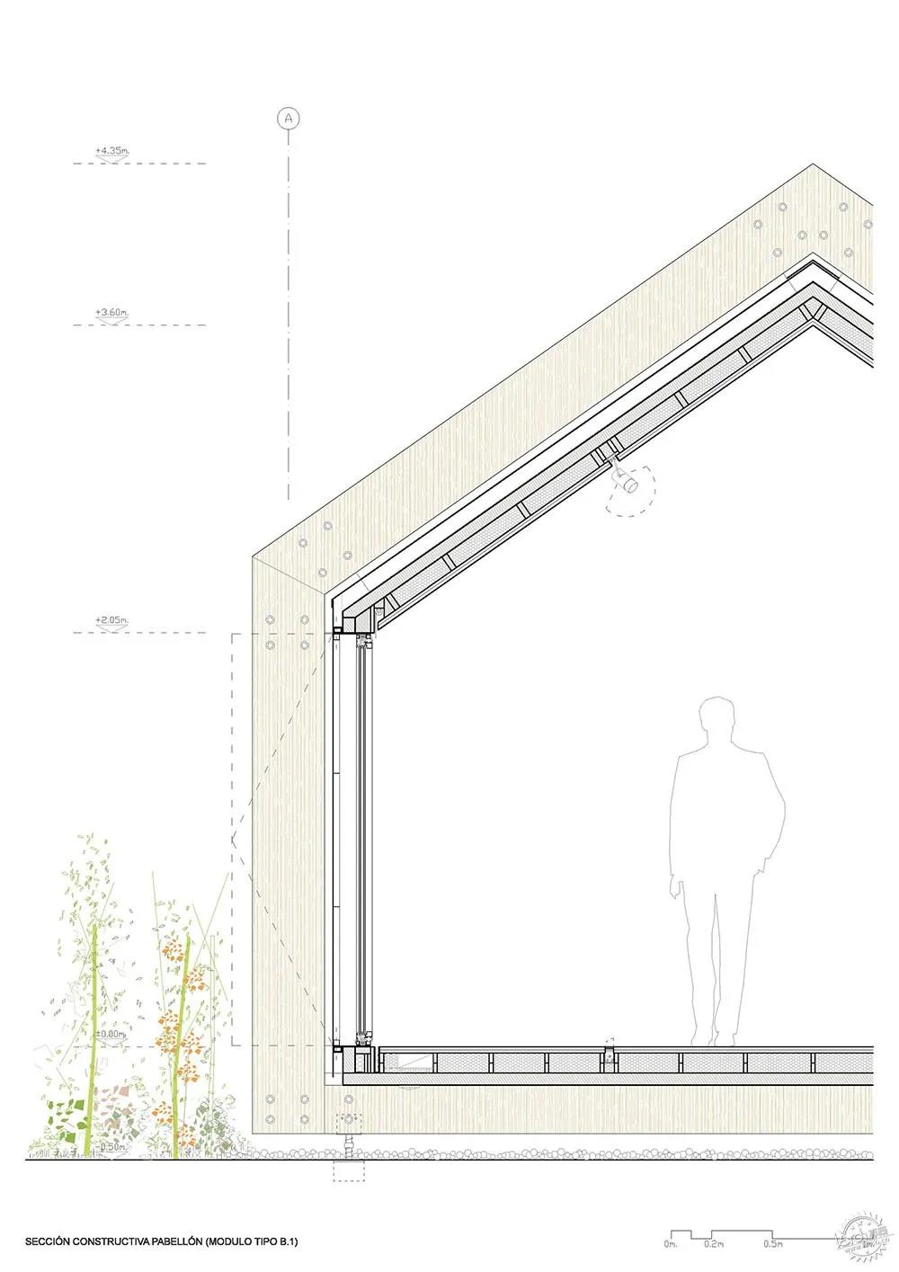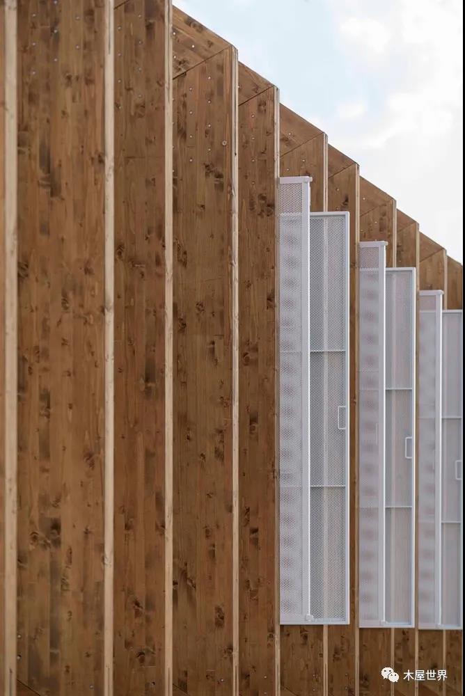 這是一個(gè)干燥的工業(yè)化木結(jié)構(gòu),能夠保證質(zhì)量,對(duì)于環(huán)境的影響低,但是有著一定的效率、經(jīng)濟(jì)效益,以及結(jié)構(gòu)設(shè)計(jì)精準(zhǔn)度。與此同時(shí),這種體系便于運(yùn)輸、調(diào)試、裝卸,為了滿足這些需求,結(jié)構(gòu)、天花板、立面、技術(shù)樓層的綜合網(wǎng)絡(luò)和空調(diào)之間的協(xié)調(diào)必不可少。在建筑內(nèi)部,項(xiàng)目的最后一層覆蓋了與展館中建筑部分相同的完成面。