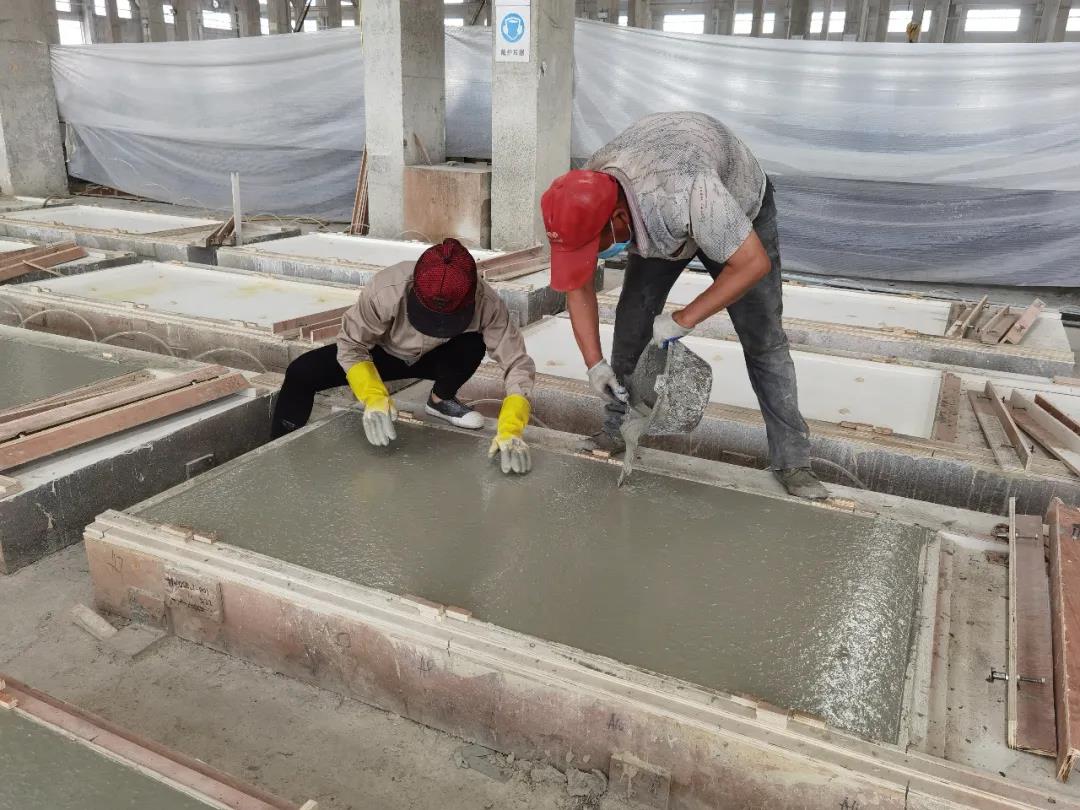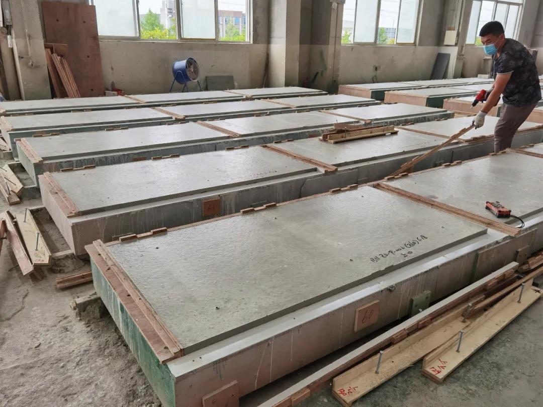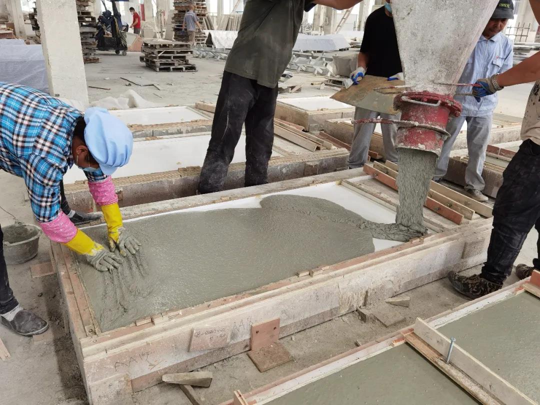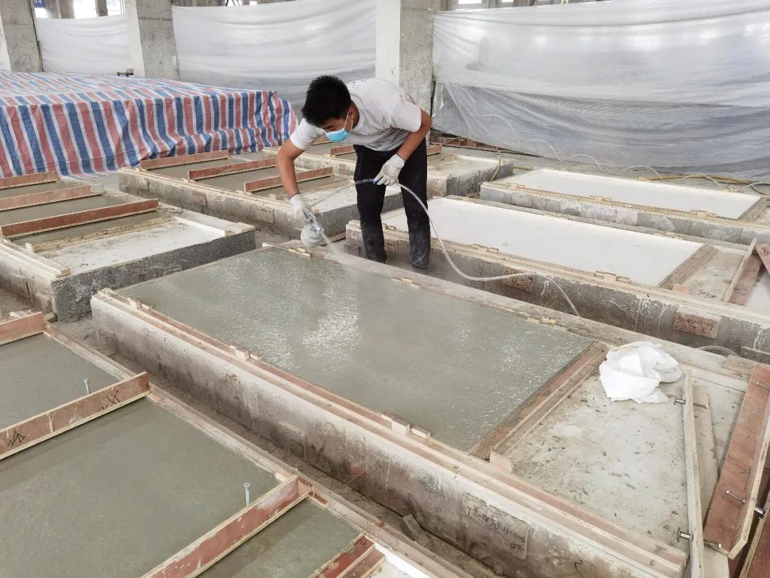 本篇選擇了一款最簡(jiǎn)單的平面構(gòu)件——仿清水混凝土墻構(gòu)件,來(lái)展示生產(chǎn)過(guò)程。相片拍攝于2020年6月,倍立達(dá)滁州工廠,感謝倍立達(dá)新材料系統(tǒng)工程公司的參觀接待和講解。